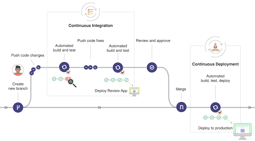GitLab CI/CD 파이프라인은 GitLab의 전체 라이프사이클 중에 검증, 패키지, 코드보안, 배포까지의 영역에 포함됩니다.