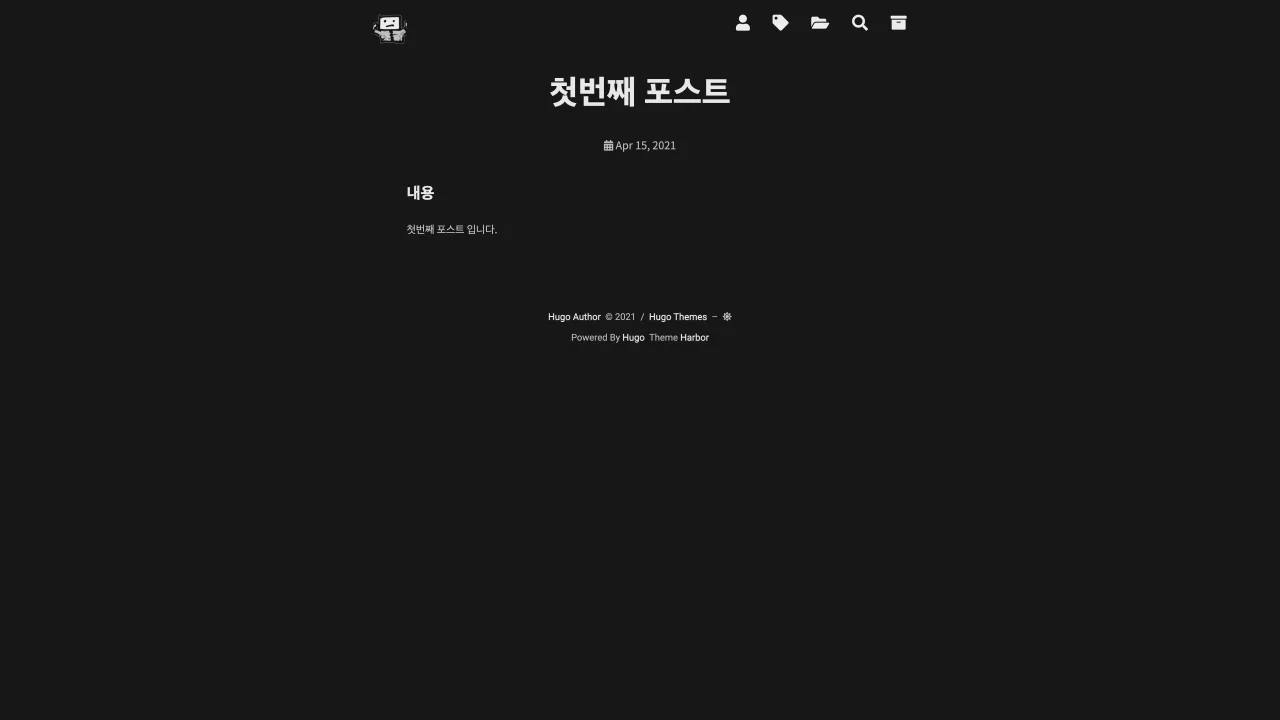 Hugo Themes에는 여러가지 블로그 테마가 있습니다. 여기서는 'harbor' 테마를 적용시켜보겠습니다.