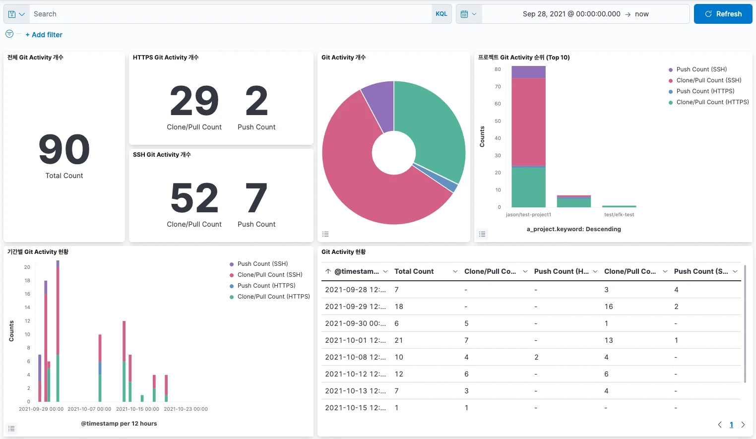 이번 글에서는 EFK 스택을 설치하고 구성하여 GitLab 로그를 수집한 후, Git Activity 대시보드를 만드는 방법을 알아보겠습니다.