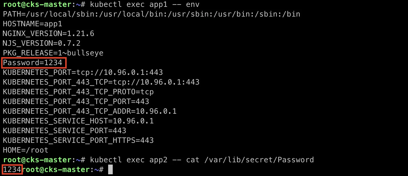 kubectl exec app2 -- cat /var/lib/secret/Password