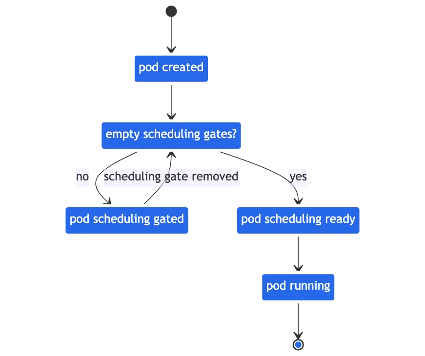 스케줄링 게이트는 새로 생성된 파드가 작동할 준비가 되지 않았음을 알리고 스케줄러는 이 파드를 무시하므로 불필요한 스케줄링 시도를 줄입니다. Cluster Autoscaler에서도 동일합니다. 이런 과정은 API 서버의 호출 없이 일어나, 부하를 유발하지 않습니다. 게이트를 지우는 것은 외부 컨트롤러가 합니다. 여러 스케줄링 게이트가 있다면 모두 삭제되어야 파드는 스케줄링 됩니다. 그렇다면, 스케줄링 게이트는 어떻게 사용할까요?