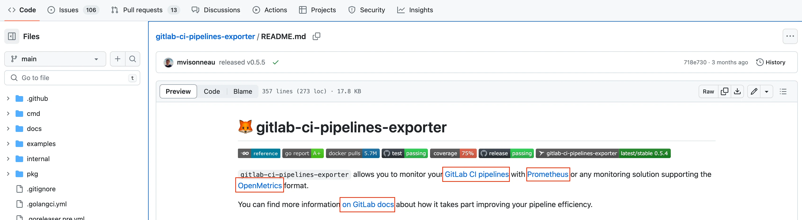 - 하위 폴더: 하위 폴더에도 별도의 README를 작성할 수 있습니다. 이는 특정 폴더의 세부 내용을 설명하기 위해 사용됩니다. 예를 들어, 아래 이미지와 같이 examples/quickstart에 대한 README를 작성할 수 있습니다.