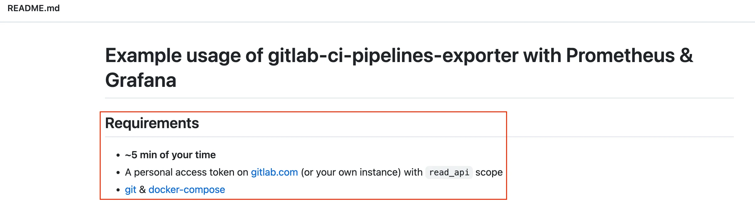 README에는 사용자가 프로젝트를 설치 또는 실행시킬 수 있는 환경을 쉽게 구성하도록 사전 요구사항을 제공해야 합니다.