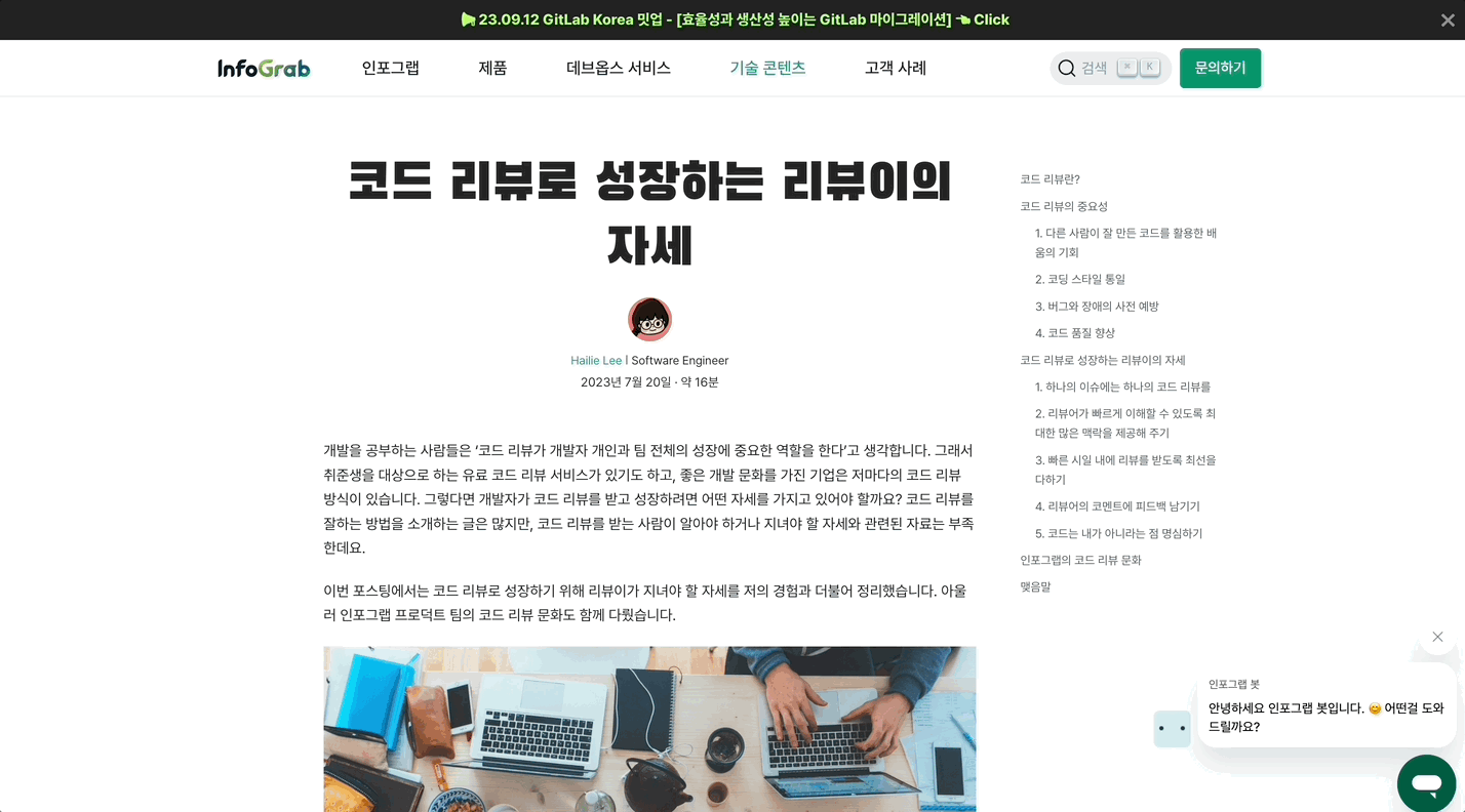 인포그랩은 GitLab 및 DevOps에 대한 맞춤 기술 지원을 제공합니다. GitLab(Omnibus/Cloud Native Hybrid) 구축 관련한 지원이 필요하시면 문의하기로 연락 주십시오.