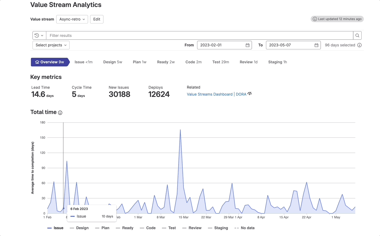 GitLab에서는 다양한 대시보드와 세분화된 데이터를 제공합니다. 이로써 고객은 가치 흐름을 다각도로 자세하게 추적하고 관리할 수 있습니다. 이는 소프트웨어 공급을 최적화하고, 고객에게 더 빠르게 가치를 제공하는 데 도움이 됩니다. 이 글에서는 소프트웨어 개발 라이프사이클 전반에 걸쳐 비즈니스 가치를 파악하도록 GitLab의 Value Stream Management 기능을 활용하는 방법을 알아보겠습니다.