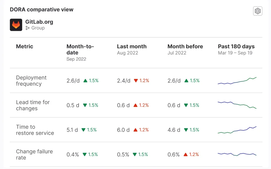- 조직의 모든 그룹과 프로젝트의 DORA 메트릭 상태를 포함한 “DORA Performers 점수” 패널 추가