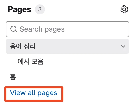 사이드바에는 페이지 버튼이 최대 5000개 표시됩니다. 그 이상 보려면, View all pages를 클릭합니다.