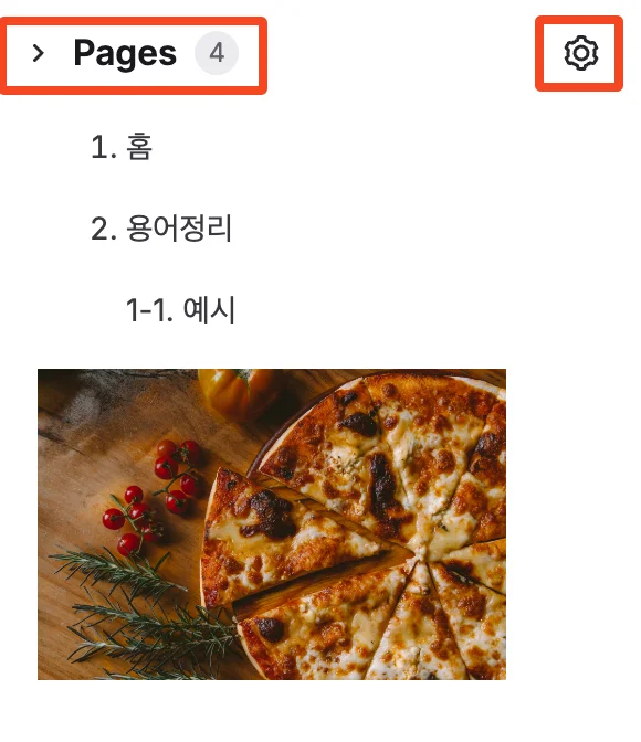 /로 나눠진 경로(Path)의 깊이(depth)에 따라 페이지 버튼이 오른쪽 사이드바에 노출됩니다.