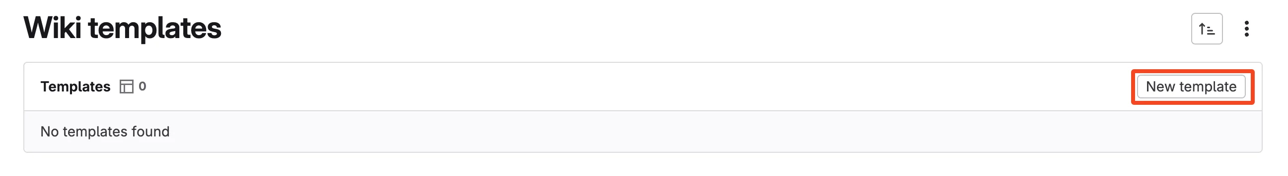 Wiki 페이지 오른쪽 상단의 케밥(세 개의 점으로 된 아이콘) 메뉴를 클릭한 다음, New page를 클릭합니다(경로 자동 입력 없음).