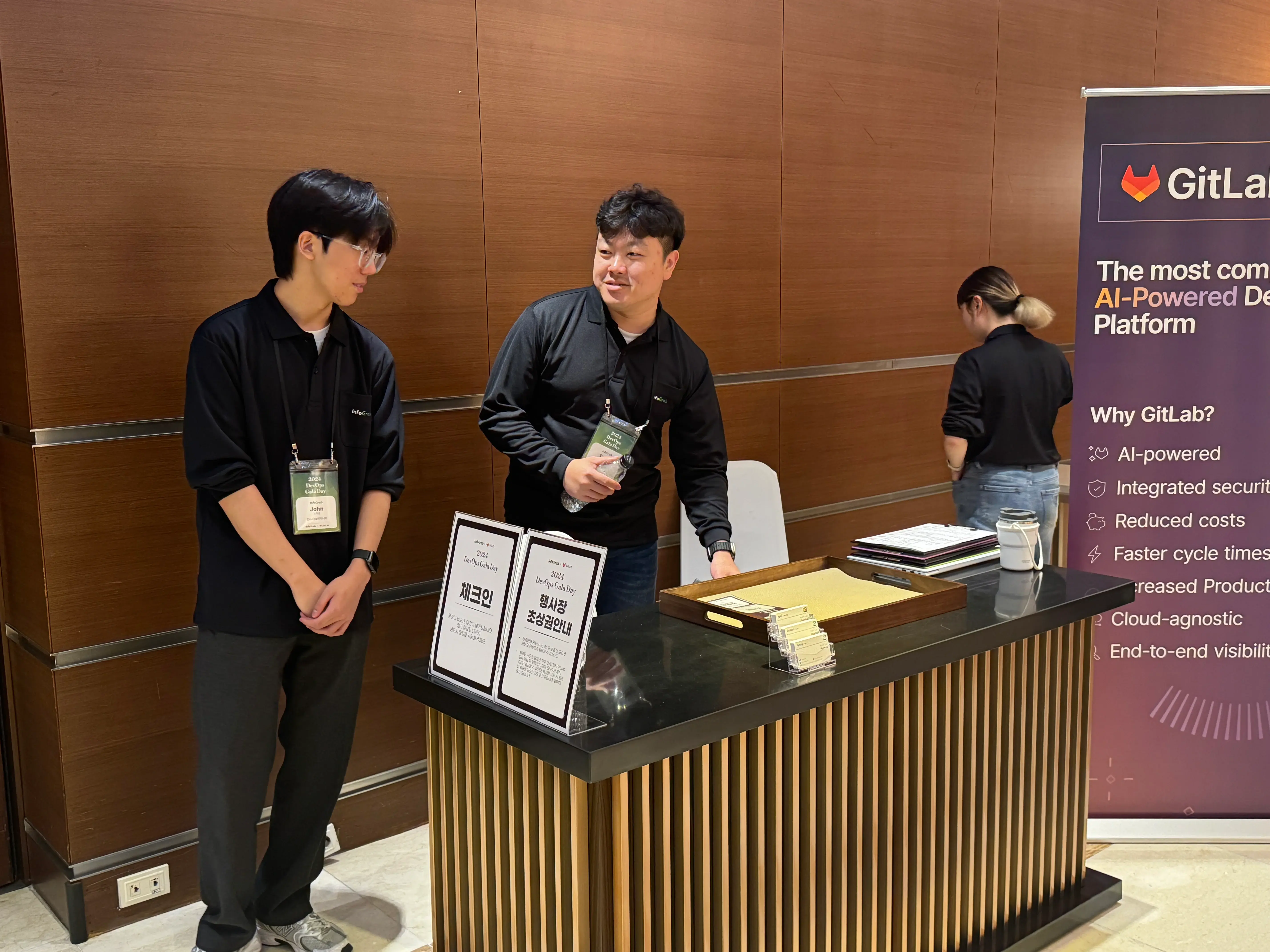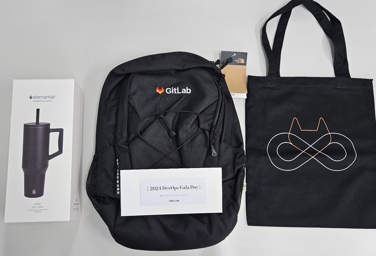 명함 네트워킹 1등에게는 GitLab 백팩, 2등에게는 GitLab 텀블러, 3등에게는 GitLab 에코백을 증정했고요.