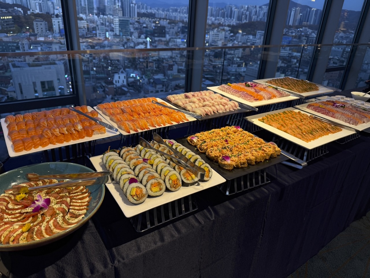 이후에도 참가자분들은 개별적으로 명함을 나누며 서로 인사를 나눴고요. 다채로운 메뉴와 육해공 별미로 구 성된 뷔페와 음료를 먹고 마시며 이야기꽃을 피웠습니다.