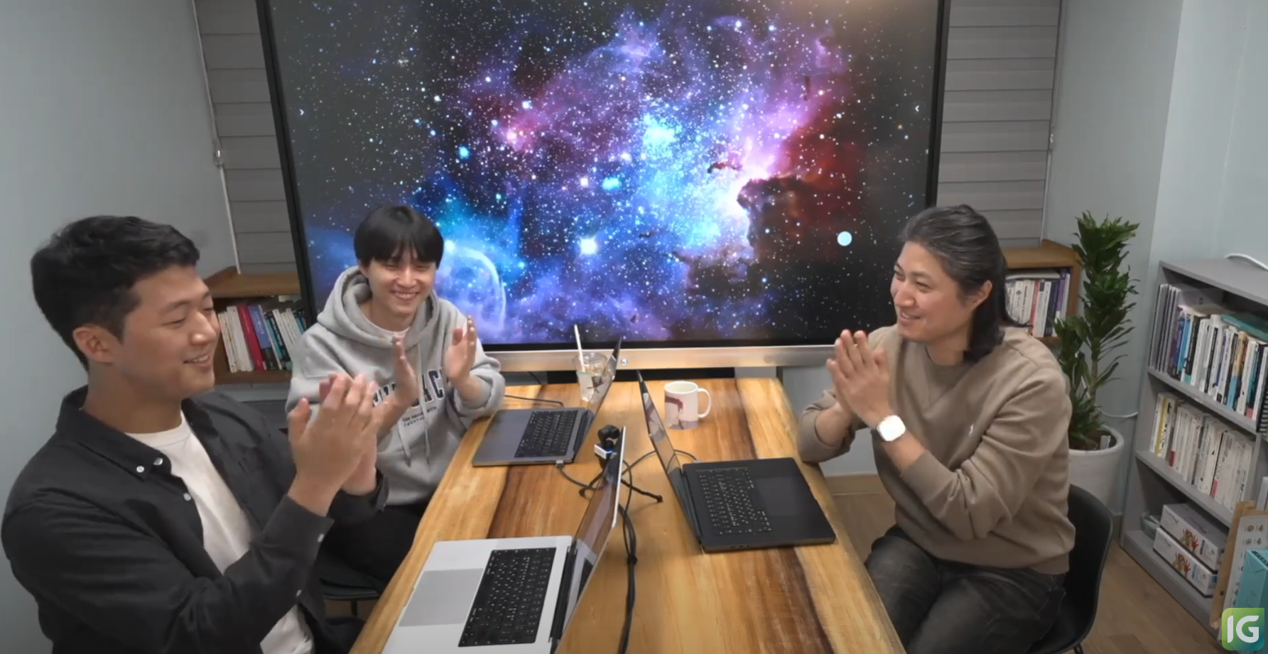 발표자인 DevOps 컨설턴트 Dexter와 소프트웨어 엔지니어 Michael, DevOps 엔지니어 Jeff가 공동 진행해 주셨는데요. 인포그랩 사내 카페테리아 테이블에 둘러 앉아 ‘토크쇼’ 분위기를 연출하며 n8n, 자동화 썰을 풀었습니다.