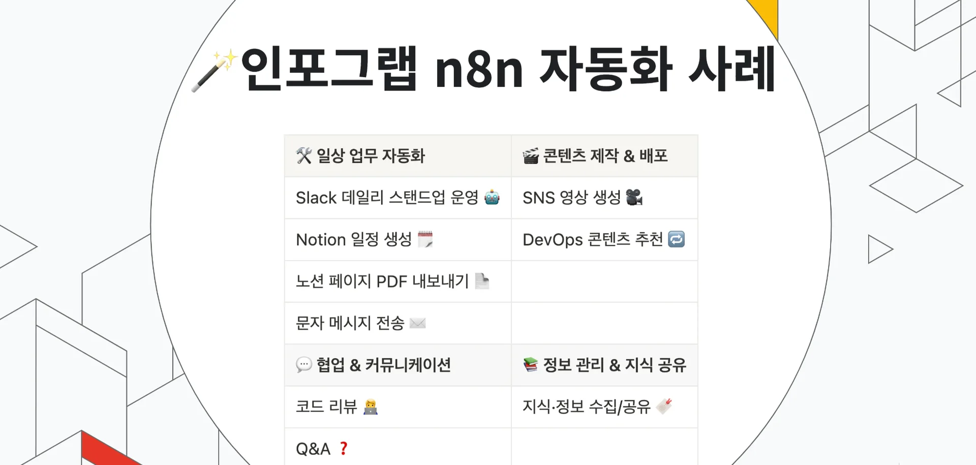 기술팀뿐만 아니라 비 기술팀의 업무 효율을 높이는 다양한 n8n 자동화 워크플로를 공유했습니다.