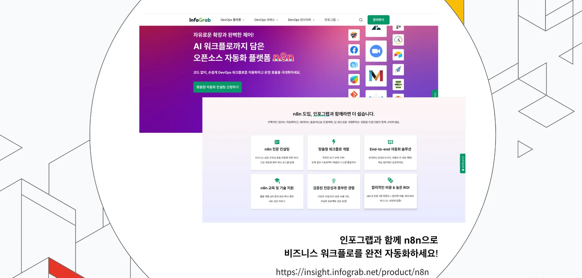 이어서 인포그랩의 n8n 자동화 지원 서비스를 자세히 소개했습니다.