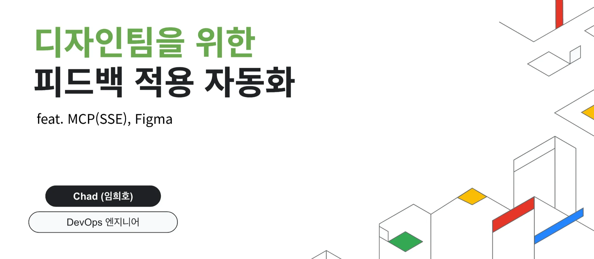두 번째 세션에서는 DevOps 엔지니어 Chad가 ‘디자인팀을 위한 피드백 적용 자동화’를 주제로 발표했습니다.