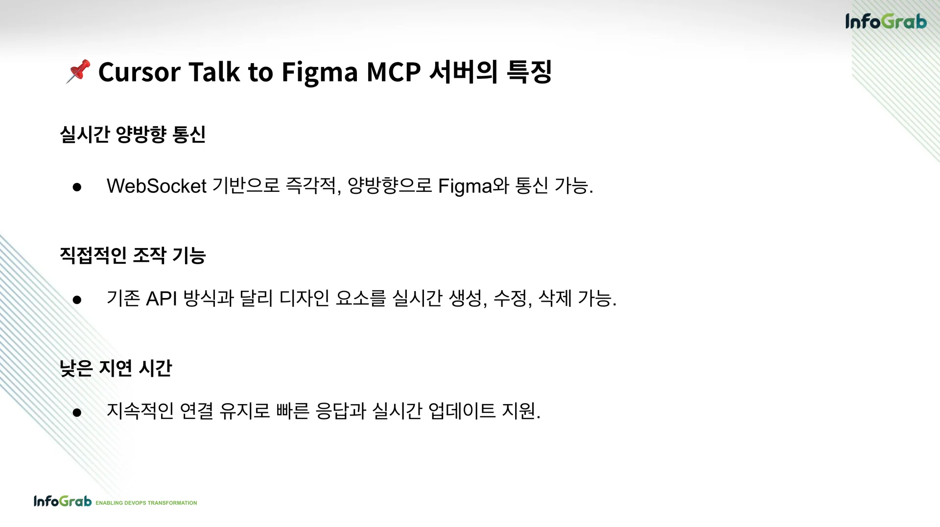 예를 들어, Cursor에서 “로그인 페이지를 만들어줘”라고 입력하면, Figma에서 디자인 요소를 자동 생성할 수 있습니다. 이 MCP는 응답이 빠르고, 실시간 업데이트를 지원하는 게 강점입니다.