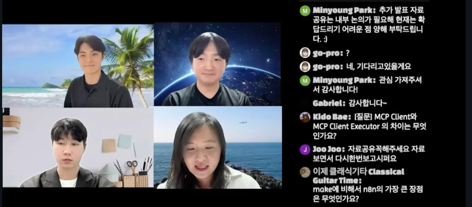 한편, 이번 Q&A 시간에도 기술적으로 깊이 있는 질문이 잇따랐는데요. MCP Client와 MCP Client Executor의 차이, make 대비 n8n의 강점 등 문의가 있었습니다. MCP와 n8n 실무 적용을 염두에 둔 질문이 두드러졌습니다.