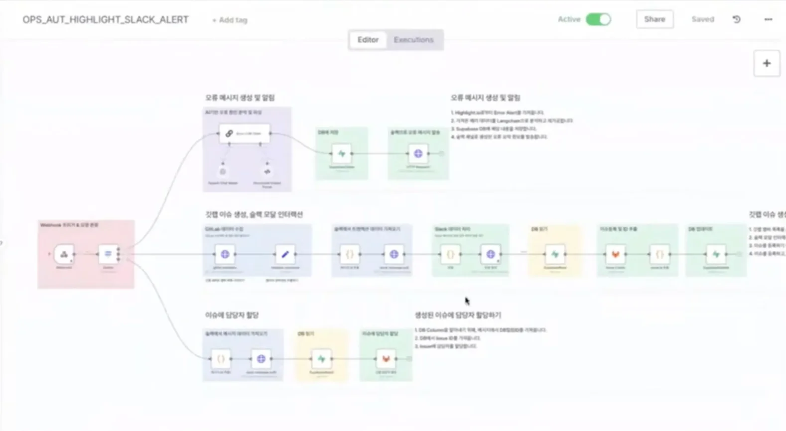 기존에는 고객 장애가 발생하면 다음과 같은 수작업을 거쳤습니다. 장애 접수 확인 → 원인 파악 시도 → 장애 이슈 등록 → 엔지니어 로그 검토 → 고객 히스토리 재요청, 수신 → 히스토리와 로그 비교 후 해결 과정을 밟았죠. 그러다 보니 장애 대응 시간이 오래 걸렸는데요. 그러나 n8n 자동화 워크플로를 구축하면, 장애 대응 과정을 최소한으로 축소할 수 있습니다.