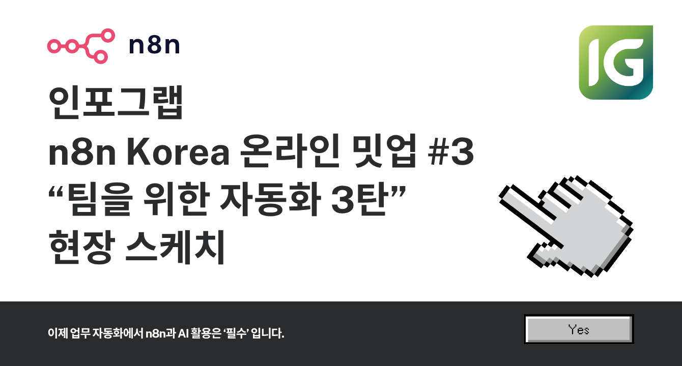 2025년 4월 25일, 인포그랩이 주최한 세 번째 [n8n Korea 온라인 밋업]을 참가자들의 큰 호응과 열띤 참여 속에 성공적으로 진행했습니다. 🎉