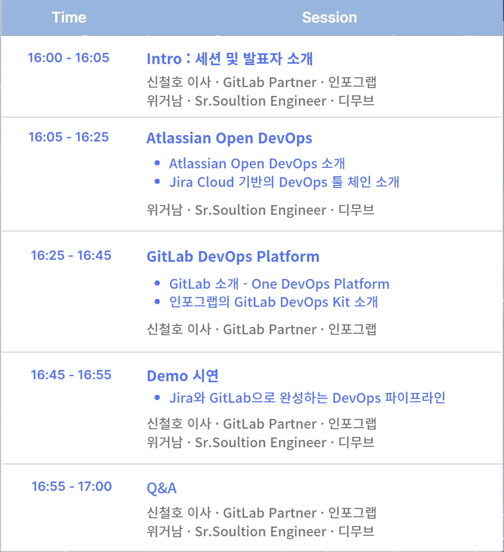 Atlassian의 플래티넘 솔루션 파트너인 디무브와 GitLab의 최고등급 파트너 인포그랩이 함께 합니다.