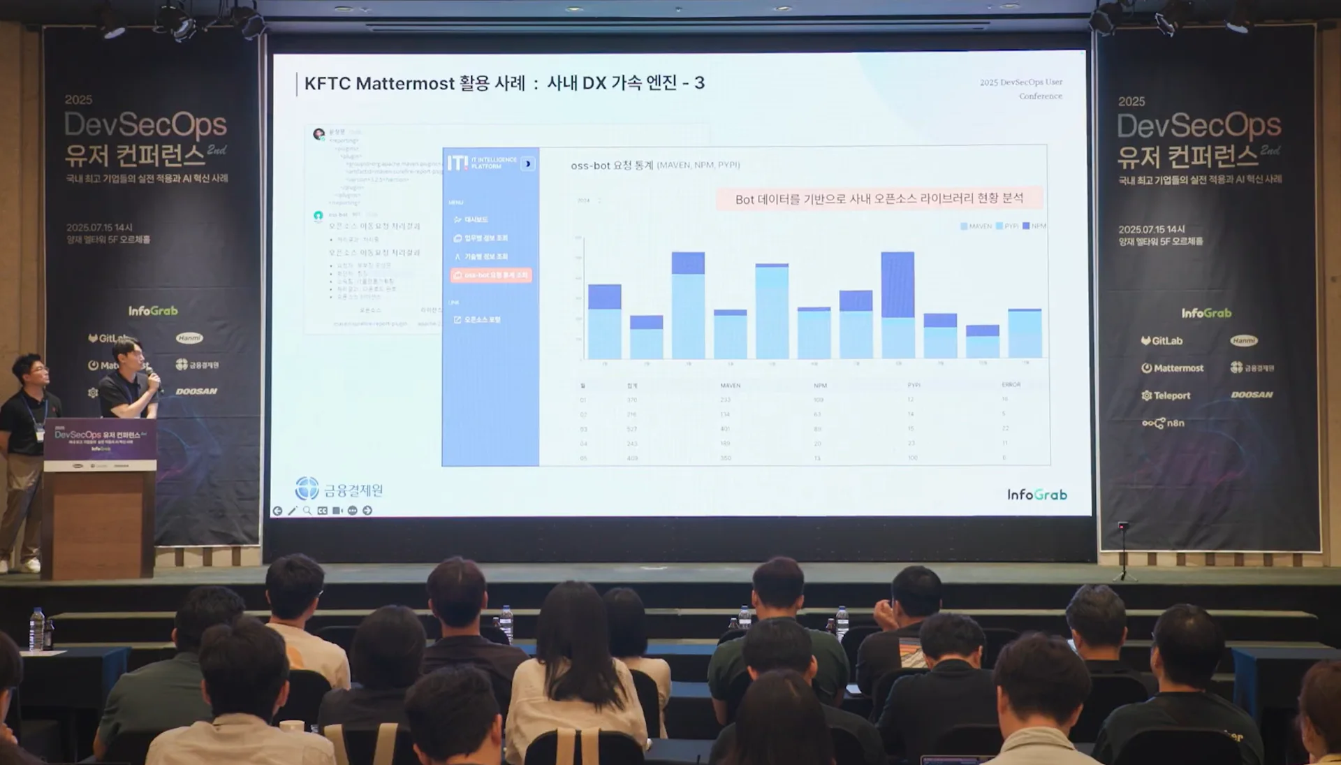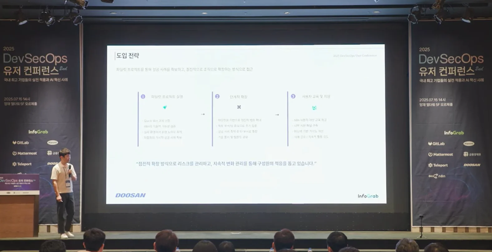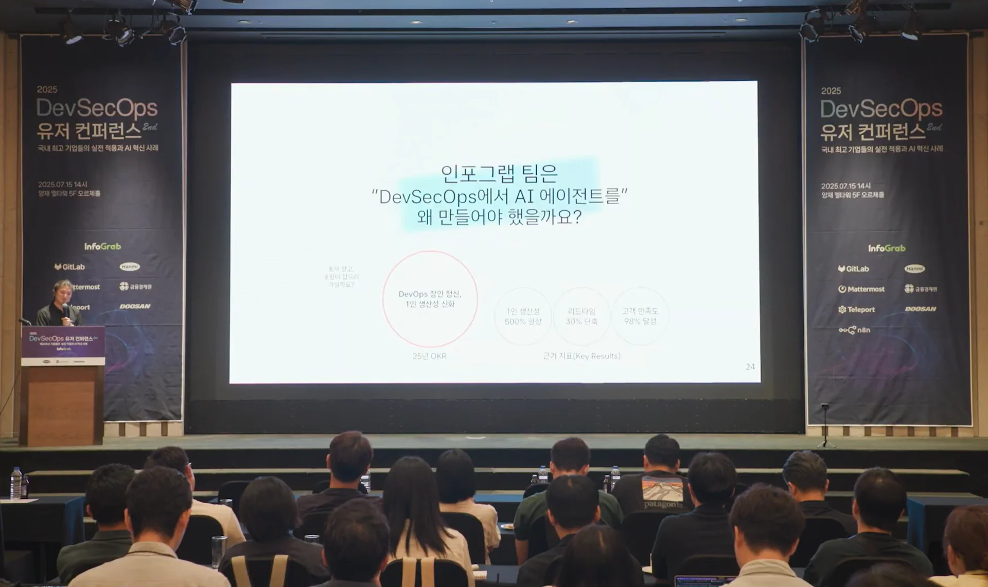 인포그랩이 준비한 ‘Agentic AI 시대의 DevSecOps 최적화 사례’라는 주제로, DevOps 방법론을 AI 프로젝트에 적용한 실제 사례와 인사이트를 소개해주셨는데요.
