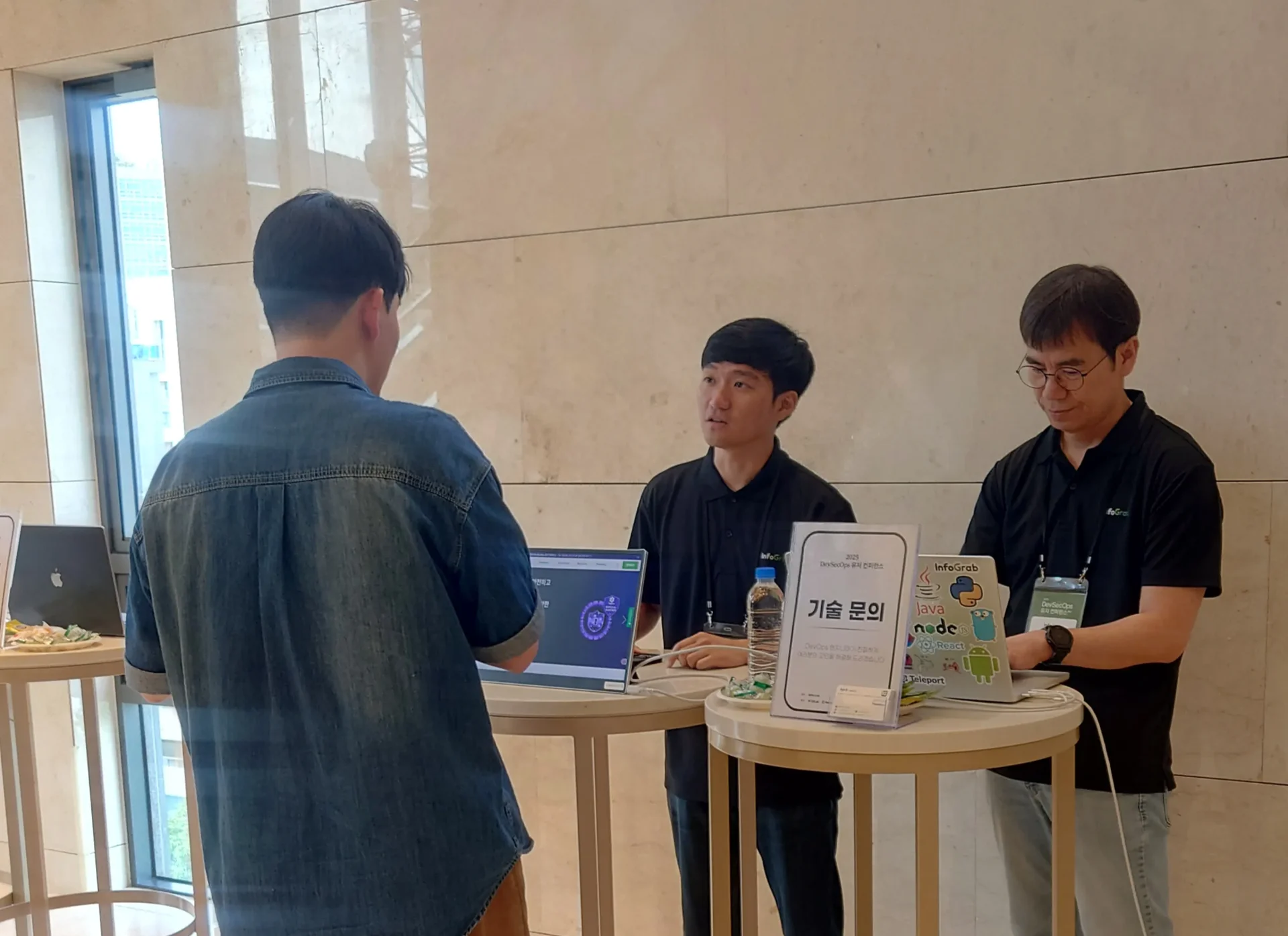 또한 행사장 입구에는 DevOps 전문 엔지니어와 자유롭게 상담할 수 있는 ‘기술 문의’ 테이블이 마련되어 있어, 쉬는 시간을 활용해 많은 분들이 DevOps 관련 궁금증을 해결하는 모습을 볼 수 있었답니다.