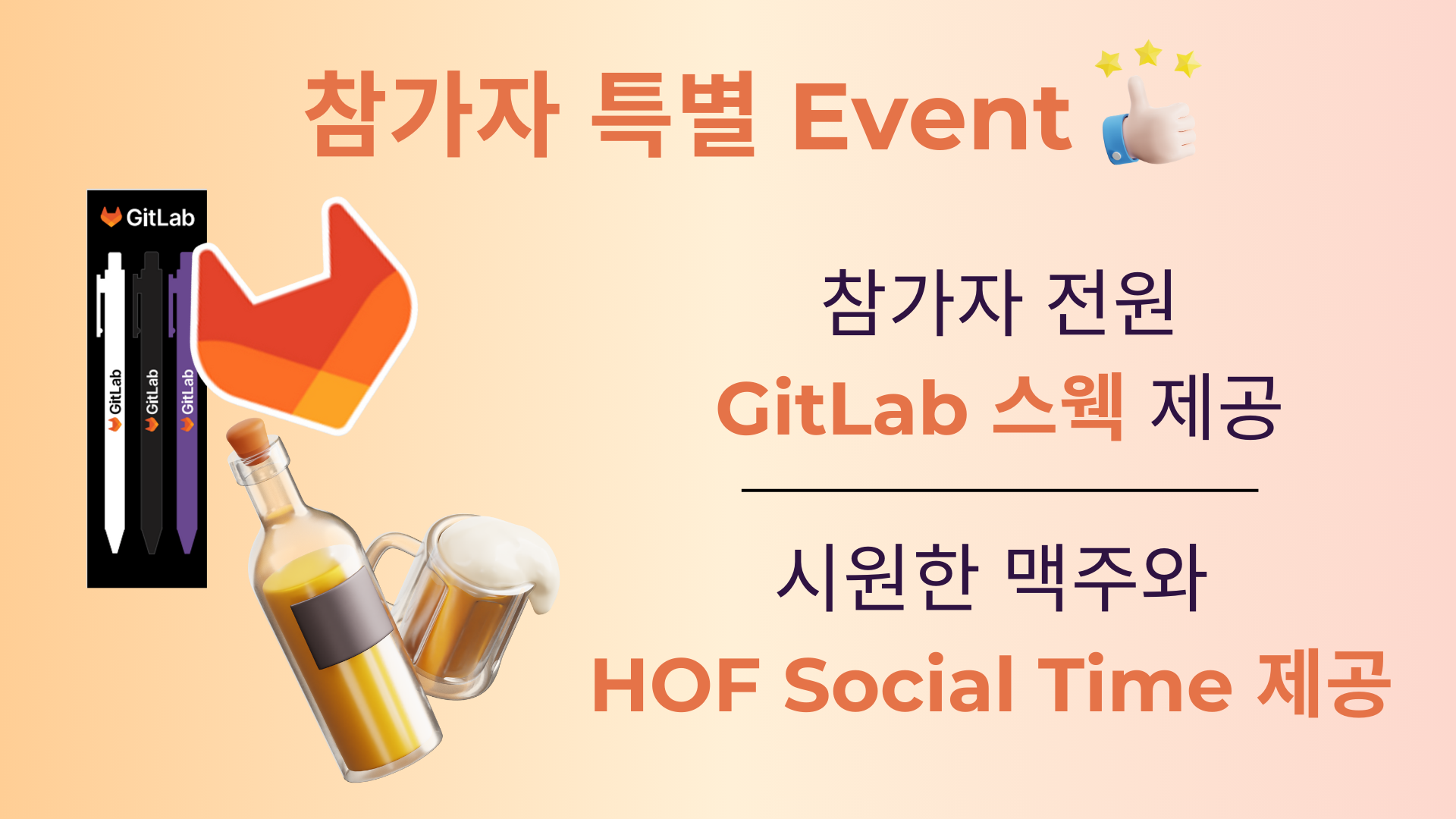 - 참가자 전원에게 GitLab 스웩을 제공합니다.(스티커, 볼펜)