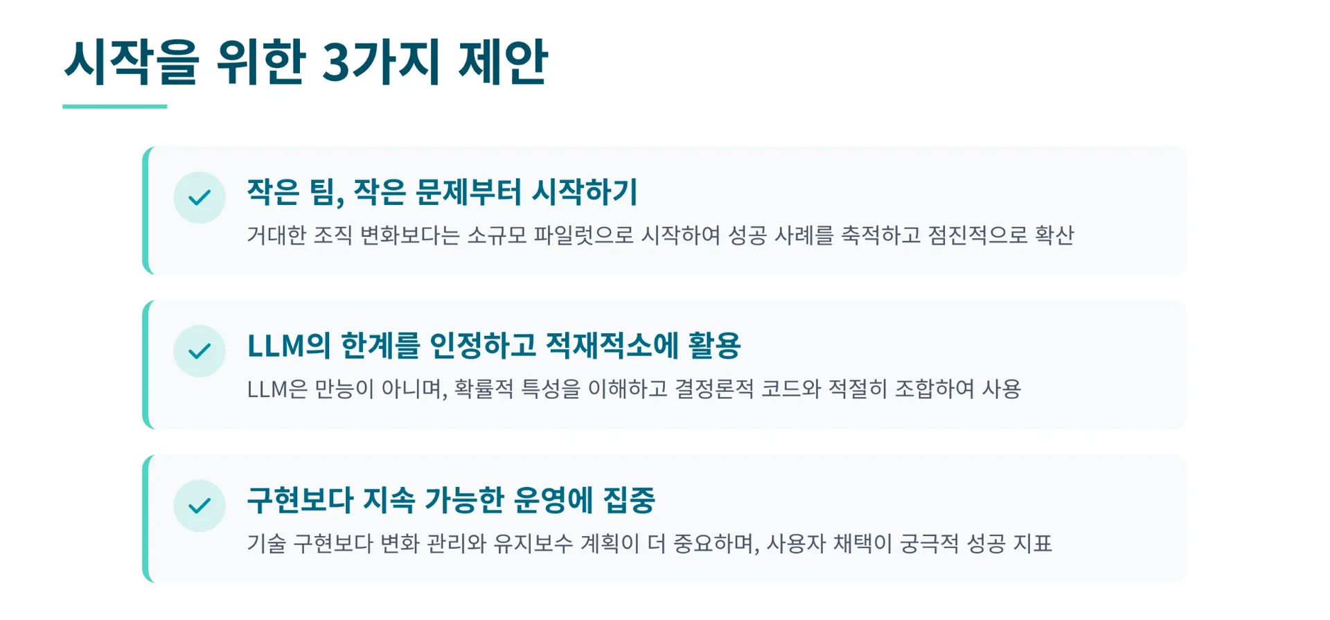 김지은 매니저는 “자동화 구현보다 팀원들의 업무 프로세스 변경이 더 어려웠다”고 말했습니다. Salesforce 이벤트 생성, Fireflies 필수 실행 등 새로운 프로세스 정착에 시간이 더 걸렸죠. 김 매니저는 “AX(AI 전환)는 지속적 개선이 중요하다”고 강조했는데요. 유지보수가 본 게임이므로, 팀/프로세스 변화에 맞춰 지속적으로 유지보수해야 한다는 의미입니다. 그는 ‘살아남는 도구의 3가지 요소’로 1)도메인 특화 데이터·전문성, 2)신뢰할 수 있는 안정성, 3)연결성을 제시했습니다.