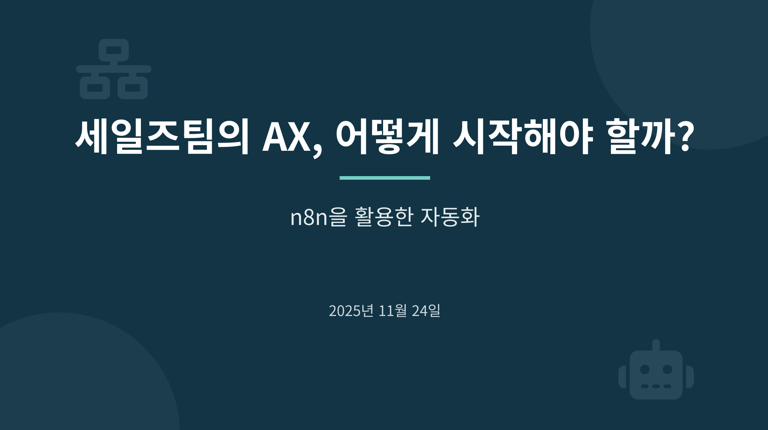이번 밋업은 ‘팀을 위한 자동화 4탄-세일즈편’을 주제로, 핵심 영업 단계를 n8n으로 자동화한 실전 사례를 집중 조명했습니다.