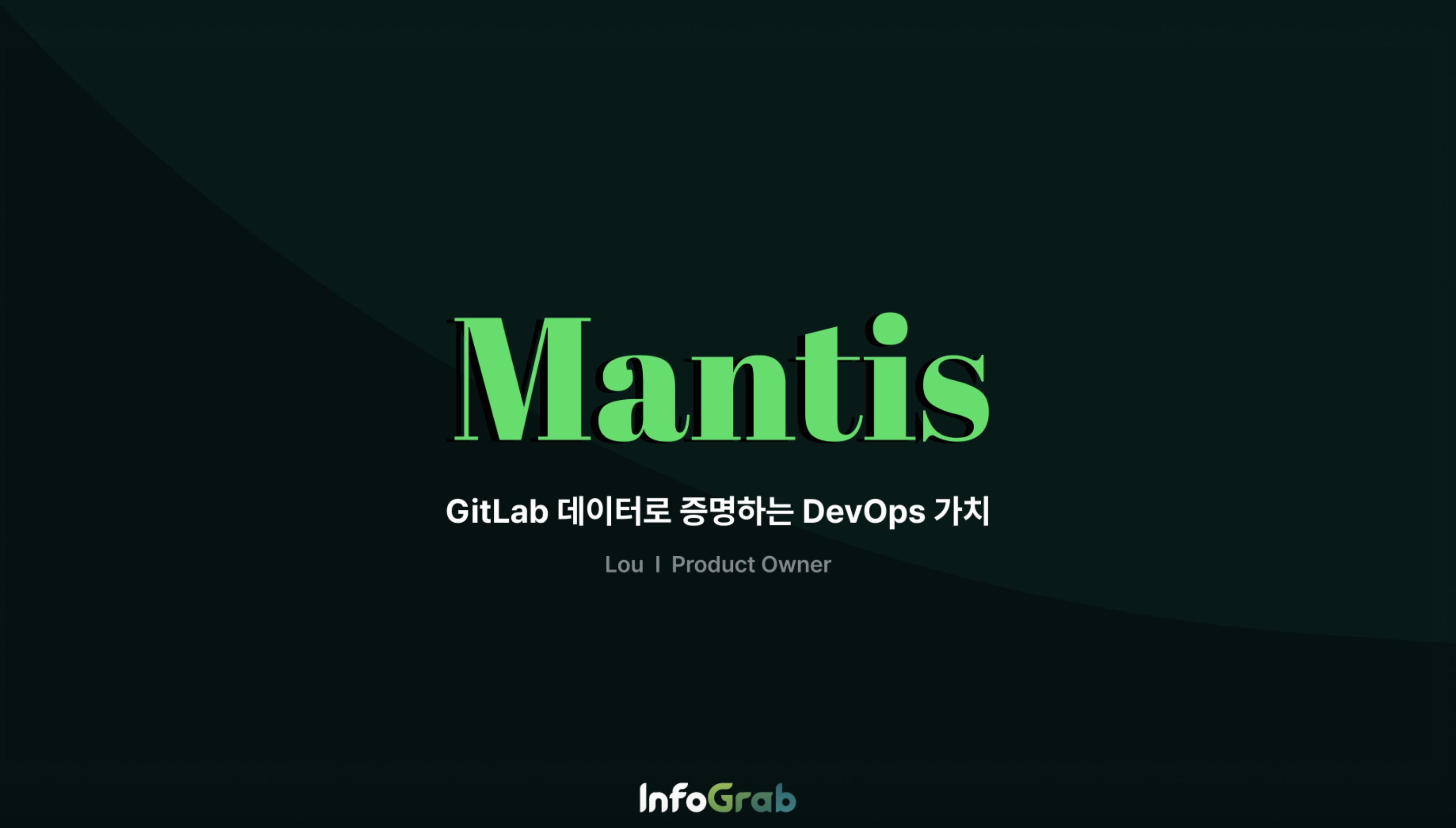 두 번째 세션에서는 인포그랩 DevOps 프로덕트 오너 Lou가 'GitLab 데이터로 증명하는 DevOps 가치'를 주제로 발표했습니다. GitLab 개발 활동 데이터를 설명 가능한 인사이트로 전환하는 방법과 인포그랩이 새롭게 선보인 AI 분석 플랫폼 Mantis를 실전 데모와 함께 소개했습니다.