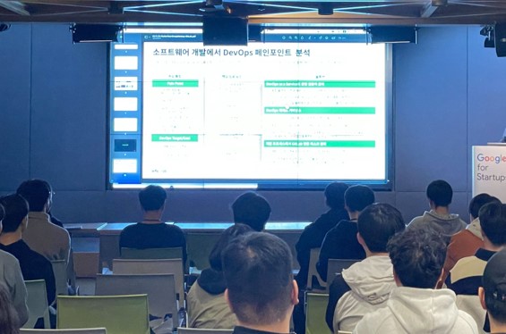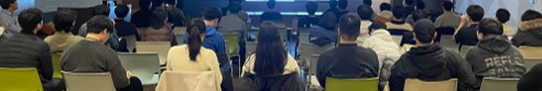 그리고 저희 인포그랩은 ‘GitLab 제품 소개’라는 주제로 GitLab에 대한 소개와 인포그랩에서 제공하는 다양한 서비스를 소개하였는데요. 스크린을 바라보며 집중하고 배우려는 열기가 엄청난 자리였습니다.
