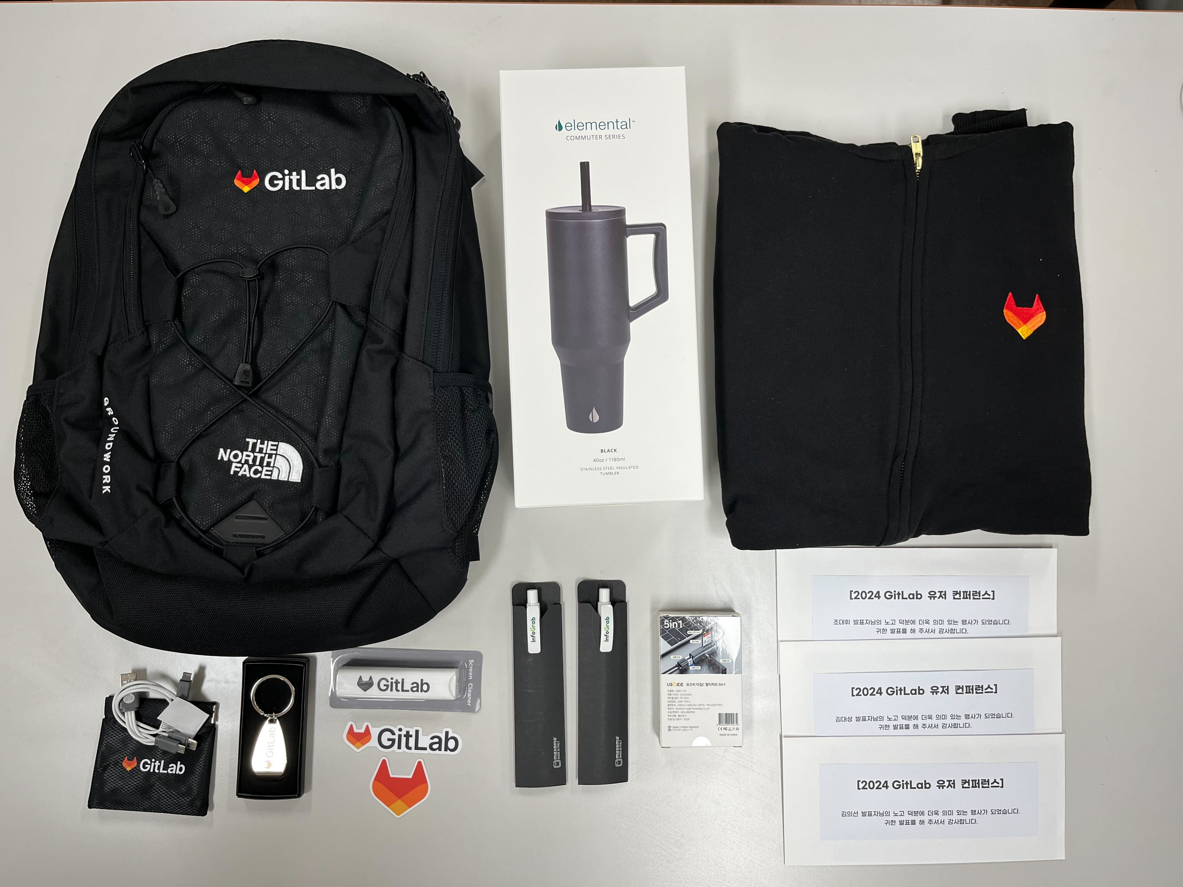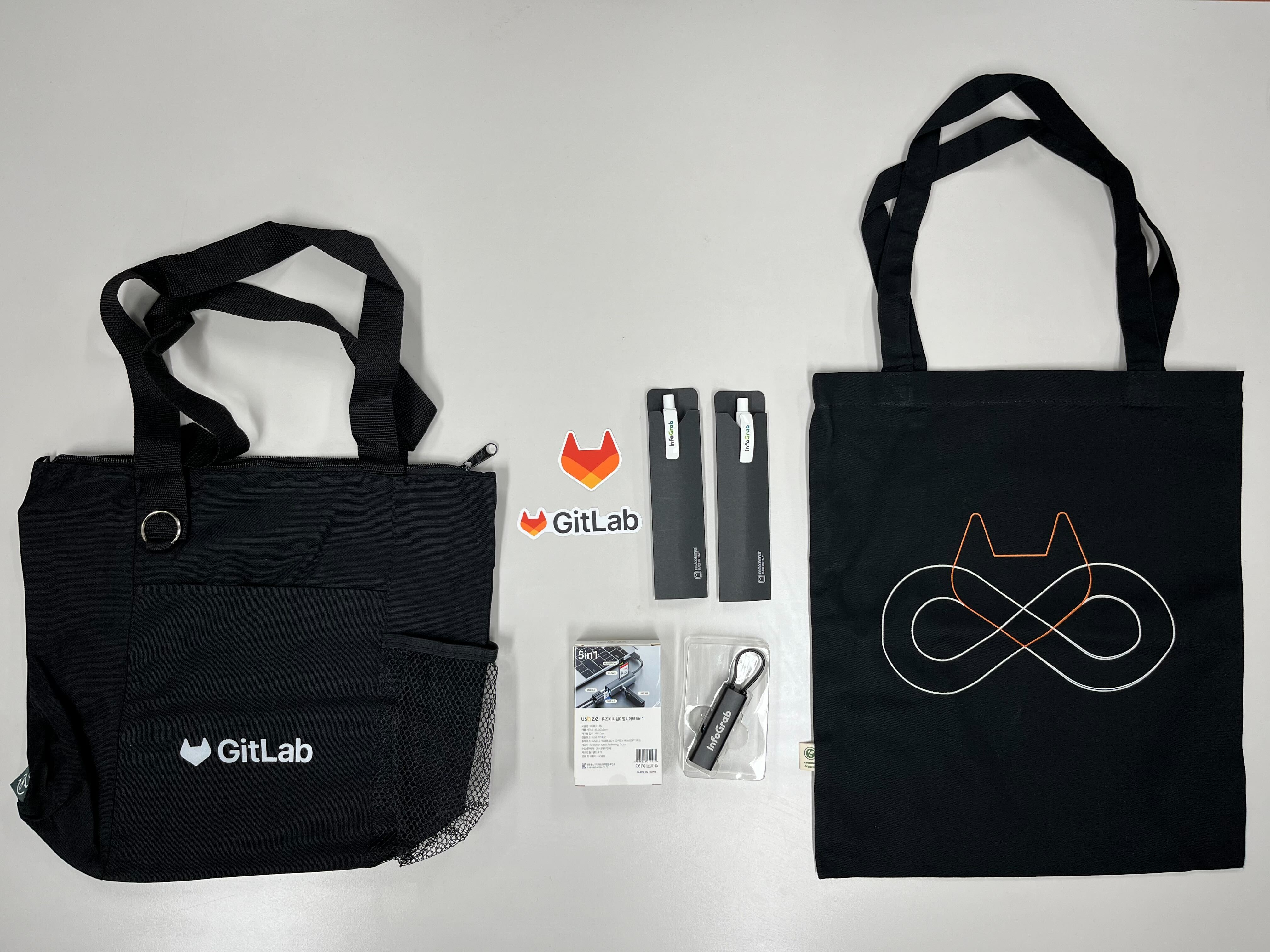 돌아가는 길에도 즐거움과 여운을 담아갈 수 있도록 세션에 대한 설문조사를 참여해 주신 분들께는 GitLab 가방을 비롯한 알찬 스웩들이 함께 증정 되었습니다.