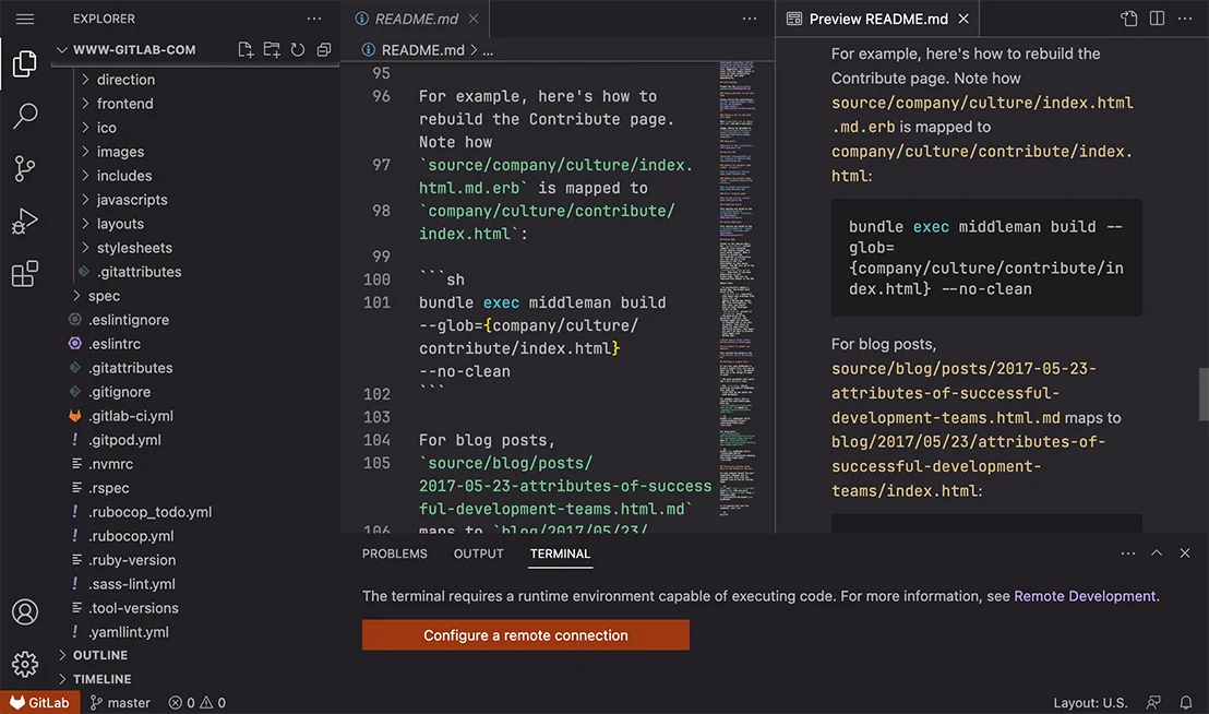 Since its introduction, we’ve been iterating on the usability, performance, and stability of the Web IDE, which has enabled us to build features like remote development workspaces and code suggestions on a powerful foundation.