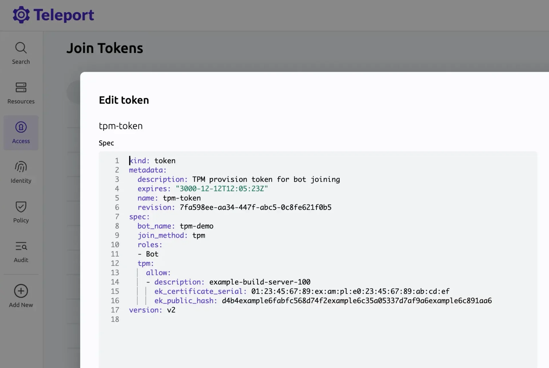 Teleport 16은 Machine ID와 에이전트 연결을 위한 새로운 TPM 연결 방식을 도입하여 베어메탈 호스트에서 자동화된 프로세스와 봇 인증에 대한 추가적인 보안 계층을 제공합니다. TPM 서명을 활용함으로써 Teleport는 머신 등록이 하드웨어 자체에 안전하게 연결되도록 보장합니다. Linux에서 Machine ID 배포하기(TPM)에 대한 문서 링크를 참고하세요.