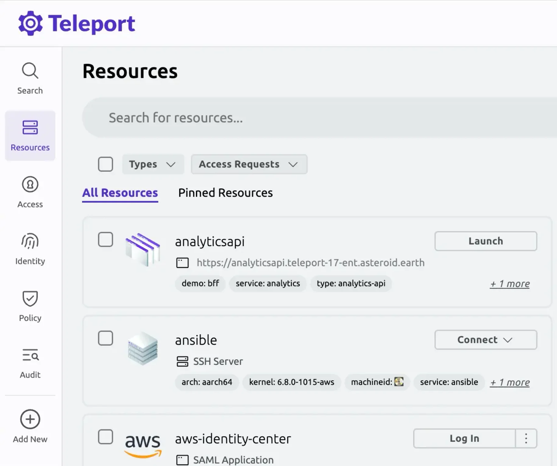 Teleport Access는 당사의 가장 성숙한 제품입니다. 암호화 기반 신원확인과 제로 트러스트를 기반으로 팀이 필요할 때 최소 권한 접근을 제공할 수 있도록 지원합니다. Teleport 애플리케이션 접근에 몇 가지 기능을 추가했으며, Machine ID와 Teleport Workload Identity를 통해 더 광범위한 머신 투 머신 지원을 개선했습니다.